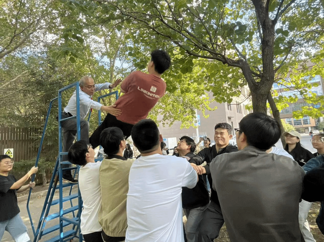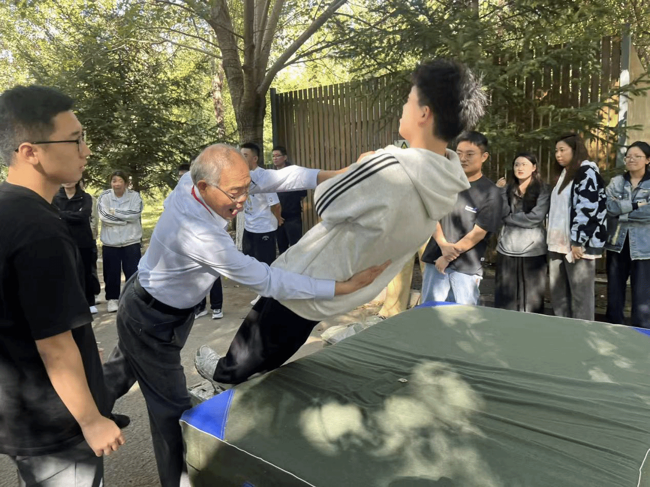 作为活动的情感凝聚点,“信任背摔”项目直击集体归属感培育——站在1.6米高台上的新生,需克服恐惧向后坠落,由台下队友组成的保护垫稳稳接住。辅导员在项目前结合法纪与安全教育中安全信任共同体的理念,强调“信任不仅是情感,更是集体责任的体现”;指导教师则示范正确保护姿势,确保活动安全有序。当一名新生勇敢坠落并被队友稳稳接住时,现场响起热烈掌声,不少新生坦言:“从犹豫到跳下,感受到的不仅是安全,更是‘被集体接纳’的踏实,这比任何说教都更懂‘集体’的意义。”