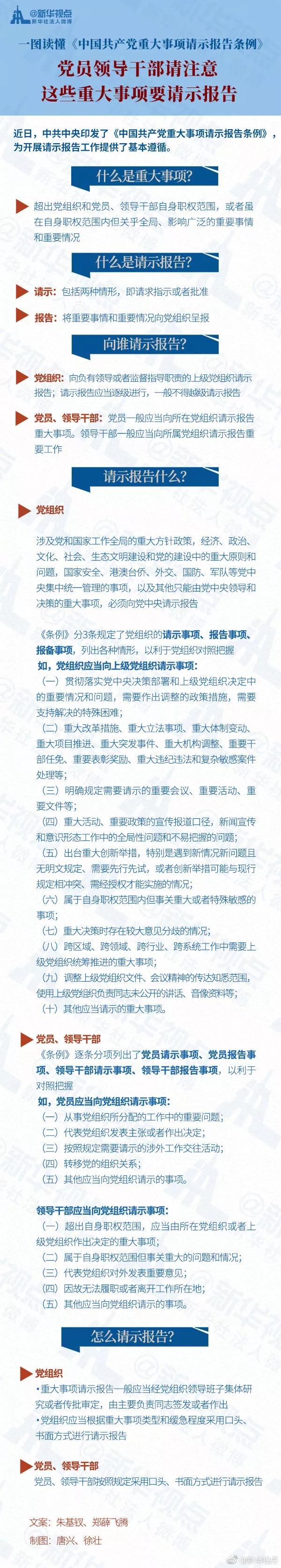 《中国共产党重大事项请示报告条例》全文如下。