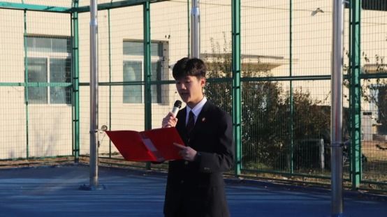 仪式伊始,国旗队出旗,他们迈着铿锵的步伐,护送鲜艳的五星红旗到国旗台前。伴随国歌响起,五星红旗冉冉升起,全体人员列队整齐、齐唱国歌。随后,经贸202班屈乐竺做国旗下讲话,他在讲话中提到,“青春是学习的季节,青春是奋斗的岁月,而能够让我们的青春折射出最耀眼光芒的那份事业必定是中国共产党的事业。我们正奋进在实现中华民族伟大复兴的征程上。肩负的不仅仅是历史使命,更多的是无限的希望。”最后会计203班宛明帅带领大家重温入团誓词。至此,本次升旗仪式圆满结束。