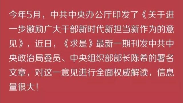 中组部部长陈希解读《关于进一步激励广大干部新时代新担当新作为的意见》