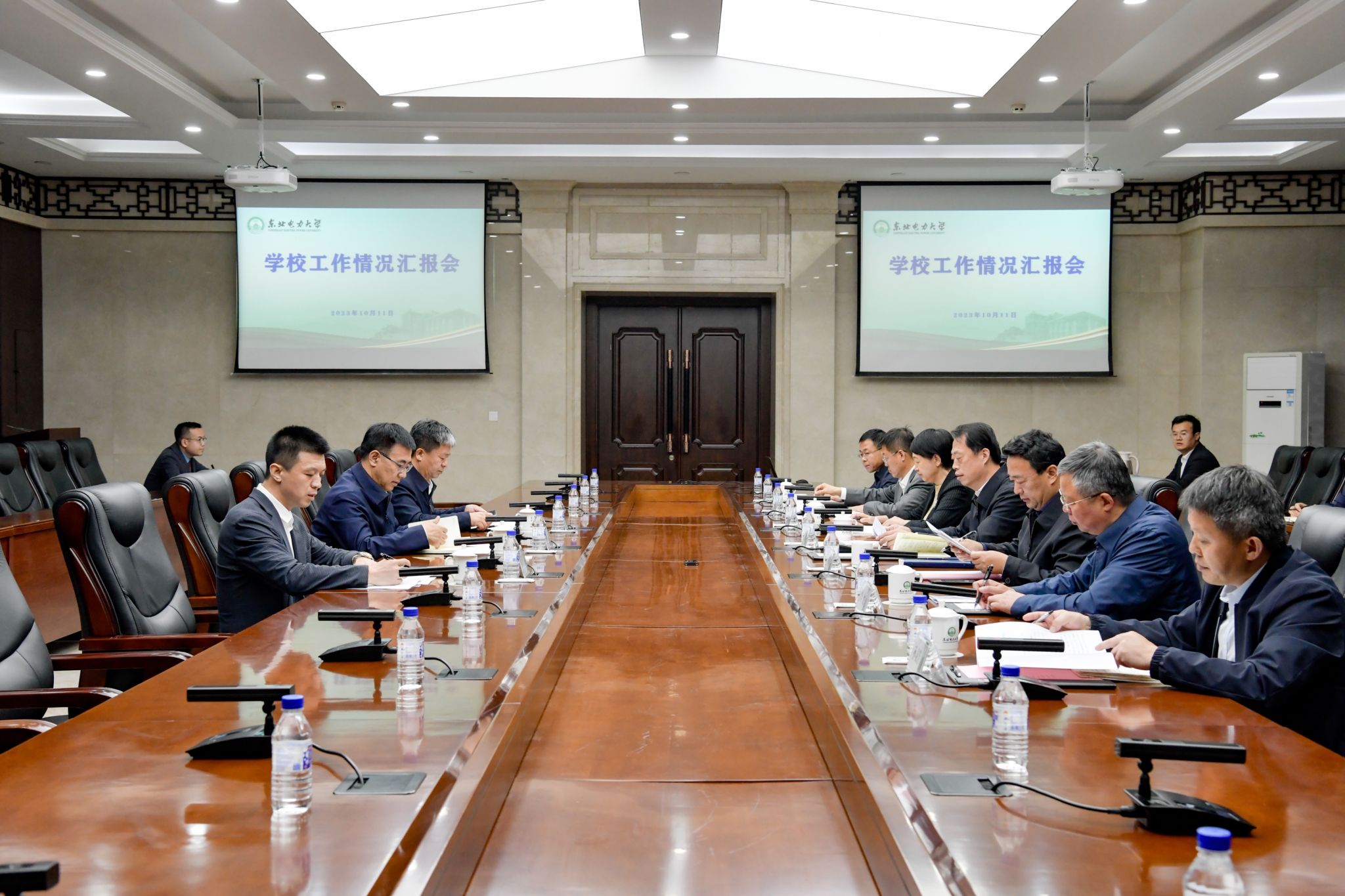 张静辉代表学校对教育厅一直以来对学校的关怀、厚爱和大力支持表示感谢。他从坚持龙头带动,扎实推进高水平学科体系建设;坚持“引培并举”,全力推进高素质师资队伍建设;坚持“四个面向”,着力培育高层次科研成果;坚持立德树人,不断深化高质量人才培养体系建设;坚持夯实基础,努力为师生营造更加优越的学习生活环境等五个方面汇报了近年来发展建设情况。从立足办学特色,提升科技创新“引领力”;坚持融合共建,提升校企合作“服务力”;优化学科专业,提供人才培养“支撑力”等三个方面汇报了学校服务吉林省“一主六双”高质量发展战略、“六新产业”发展和“四新设施”建设情况。他表示,将深入学习贯彻习近平总书记在新时代推动东北全面振兴座谈会上的重要讲话精神,坚持抢抓机遇、乘势而上,努力以学校事业发展的新成绩为吉林省全面振兴取得新突破,为国家能源电力事业发展,为强国建设和民族复兴作出新的更大的贡献。