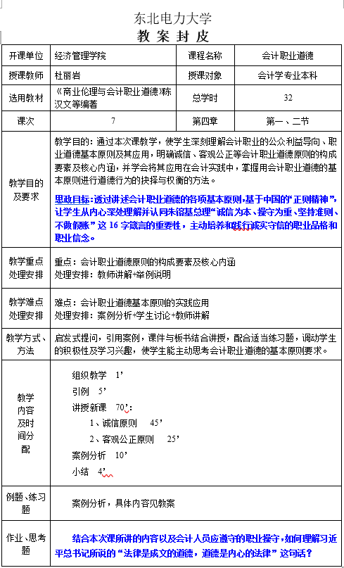 1 | 杜丽岩 | 会计职业道德 电力经济与管理 市场营销学 会计学 | 23242 23242 24251 24251 |